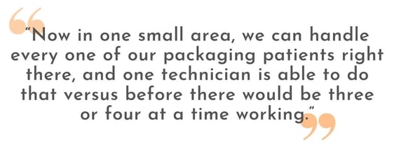 “Now in one small area, we can handle every one of our packaging patients right there, and one technician is able to do that versus before there would be three or four at a time working.”